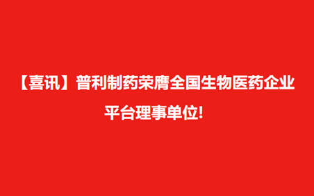 【喜讯】普利制药荣膺全国生物医药企业平台理事单位!