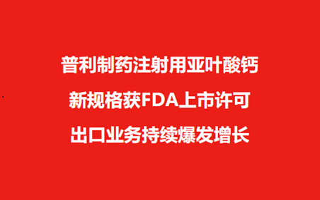 【喜讯】普利制药注射用亚叶酸钙新增规格近日获美国FDA上市许可!出口业务持续爆发增长