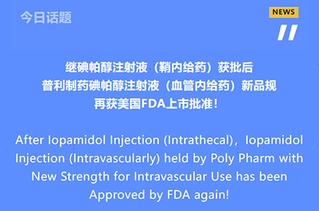 继碘帕醇注射液(鞘内给药)获批后,普利制药碘帕醇注射液(血管内给药)新品规再获美国FDA上市批准!